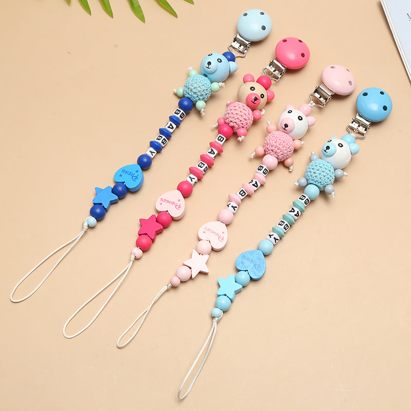 Cute Wooden Razor Bear Pacifier Chain