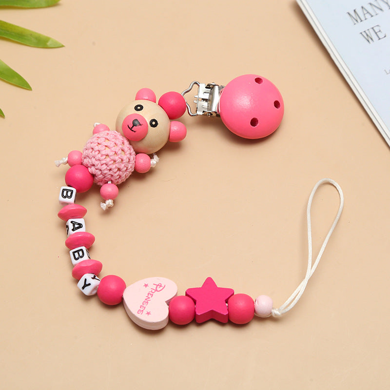 Cute Wooden Razor Bear Pacifier Chain